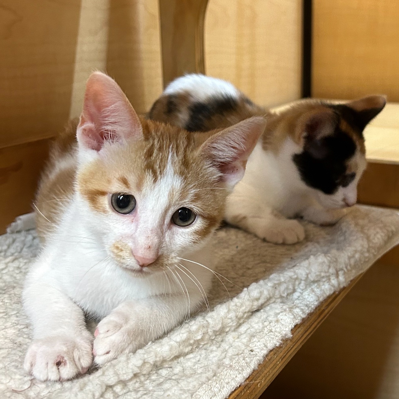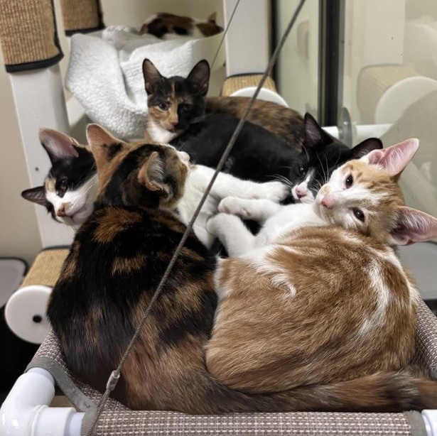 | Meet Charlie, Coco, and Cora – three little firecrackers born on the 4th of July who are ready to bring some serious fun and love into your life! Charlie, the orange-and-white boy, is as playful as they come, with endless energy for chasing toys, exploring new spaces, and leading the charge on kitten antics. He’s as affectionate as he is adventurous, and after a full day of play, he’s always up for a cozy cuddle. Then there’s Coco and Cora, his two calico sisters, who are just as spirited! These little firecrackers will keep you on your toes with their curious personalities and playful pounces. Always ready to entertain and explore, they love keeping each other company and would be over the moon to go to a home together – or with their brother Charlie! Whether it's playtime or cuddle time, Charlie, Coco, and Cora are ready to fill your home with purrs, love, and laughter. |