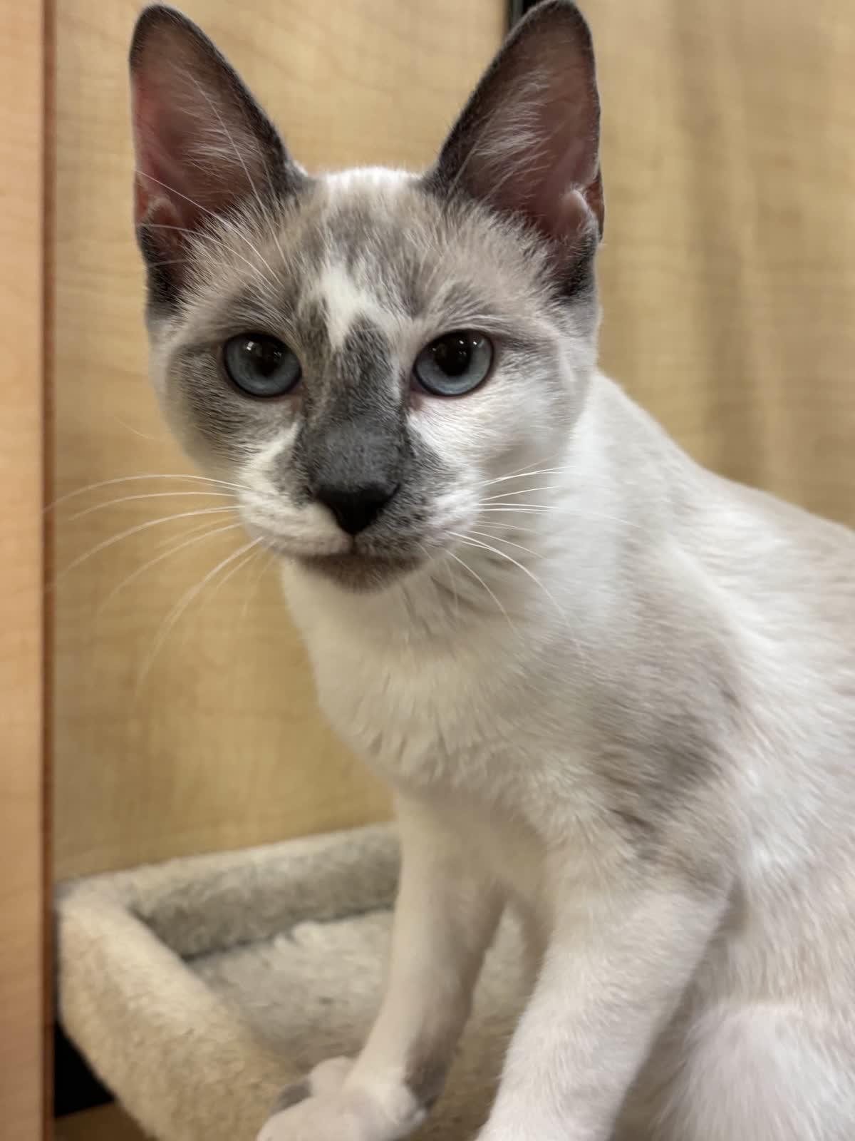 | Meet Charles! Charles is a gorgeous 6-month-old Siamese mix with a soft cream and grey coat and the classic good looks of his breed. Still very much a kitten, he’s playful, curious, and full of personality. Charles has been fostered with lots of other kitties and a small dog, and he’s done wonderfully with them all. He also enjoys the company of kids, making him a great fit for almost any family. Sweet, social, and affectionate, Charles is ready to bring joy, fun, and plenty of love to his forever home. Apply to adopt at: https://nhanimalrescue.org/apply-to-adopt/ |