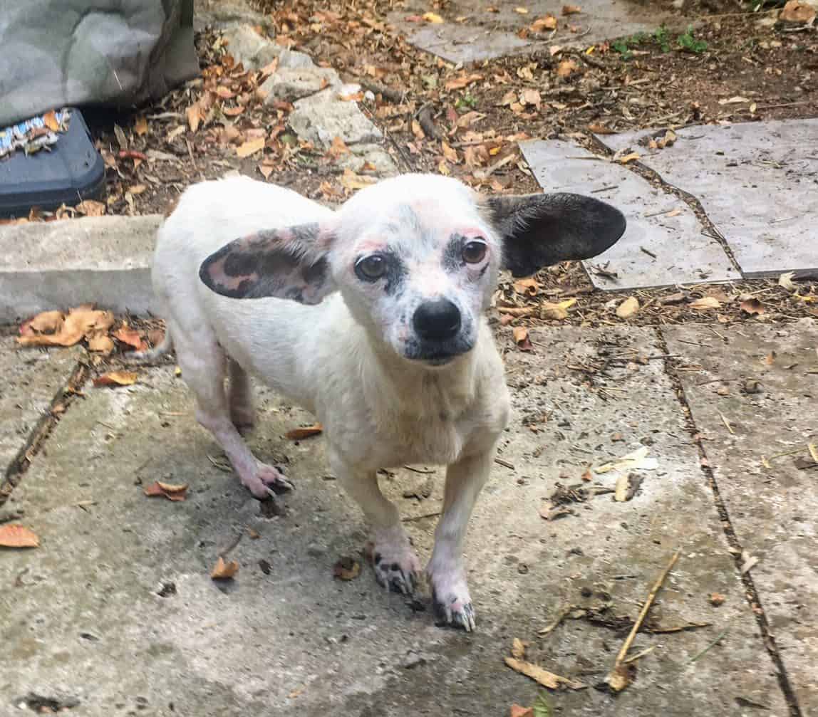 2 yo – Chihuahua mix. Her owners neglected her and then refused to pick her up at the shelter where she was turned in as a stray.